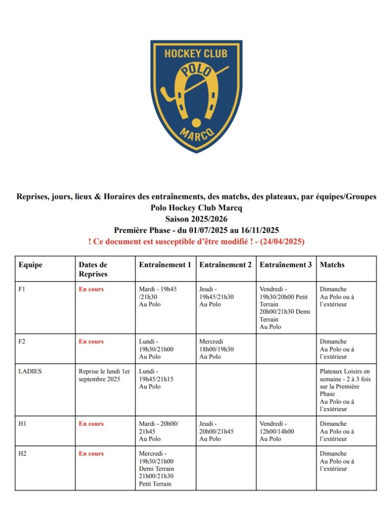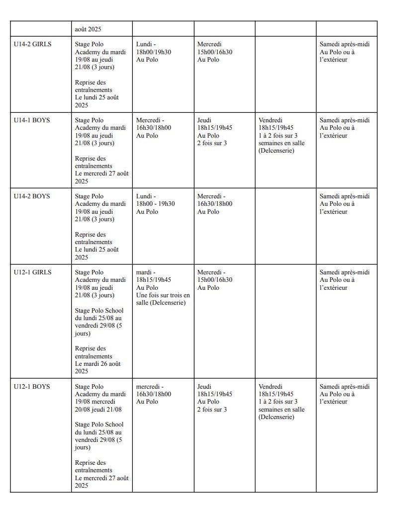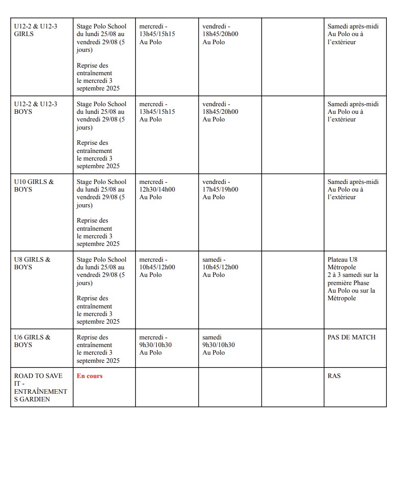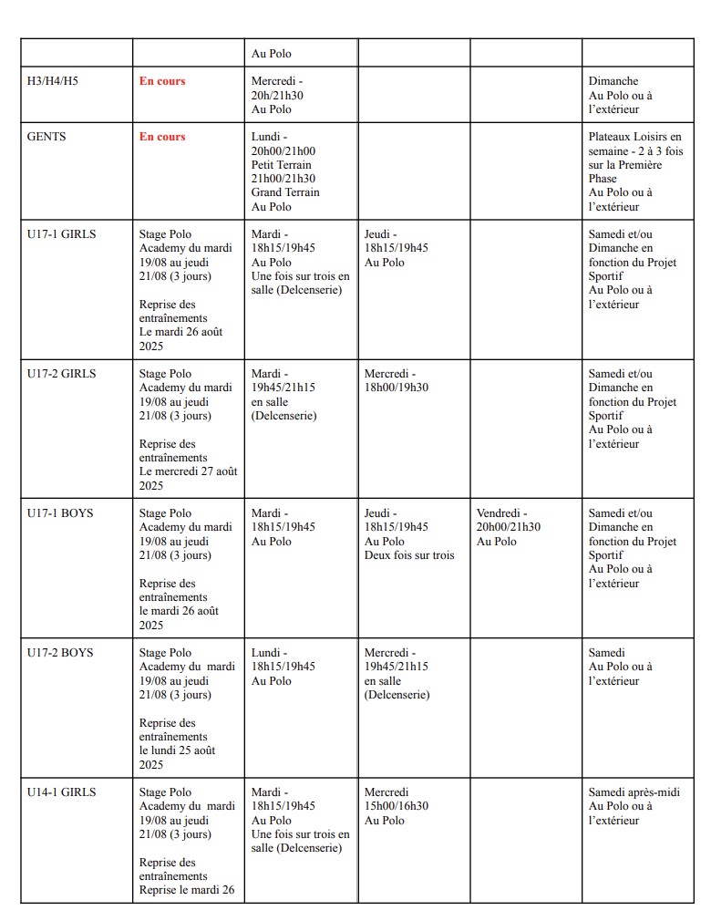 Télécharger le planning des entrainements saison 2025-2026 en version PDF : ici
